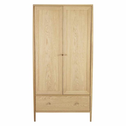 View the Ercol 4177 Winslow tall 2 door wardrobe. Comes with hanging rail for full length hanging and storage drawer. Manufactured in pale matt lacquered oak veneers and solids. The complete wardrobe solution for a contemporary bedroom.