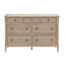 The Gallery Direct Artisan 7 Drawer Chest combines timeless craftsmanship with practical storage, making it a perfect addition to any home. Crafted from oak, oak veneer, pine, MDF, and plywood, its natural lime-wash finish highlights the elegant hand-turned bobbin detailing, adding character and charm.