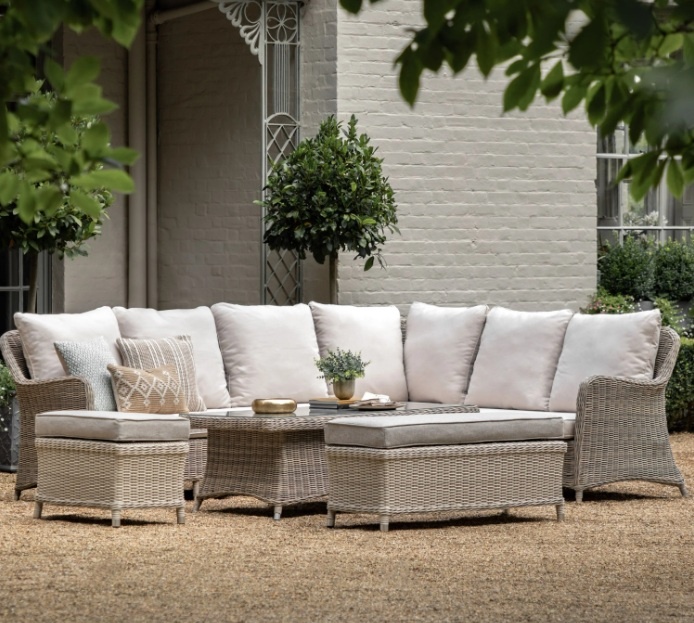 The Gallery Ascot Corner Dining Set is a stylish and versatile choice for any outdoor space. Made from durable PE wicker with a sturdy aluminum frame, it offers both comfort and durability. The plush cushions provide a cozy seating experience, perfect for relaxing or entertaining guests.