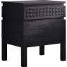 The Boho Boutique Bedside 2 Drawer Chest is made using Mango solids with mixed timber veneers of Teak-Mahogany-Mindy Ash and Mango which give contrast and make the inlaid pattern stand out. It has a stunning mat black charcoal finish - the different grains in the mixed timbers stand out in the light and catch your eye with this beautiful detail.