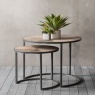 A stylish blend of industrial and modern design, this nested set features a chevron-patterned weathered timber top in grey and natural tones. The sturdy gun-metal metallic base adds a sleek touch, while the space-saving design allows the smaller table to tuck neatly under the larger one. Perfect for any interior, whether eclectic or contemporary.