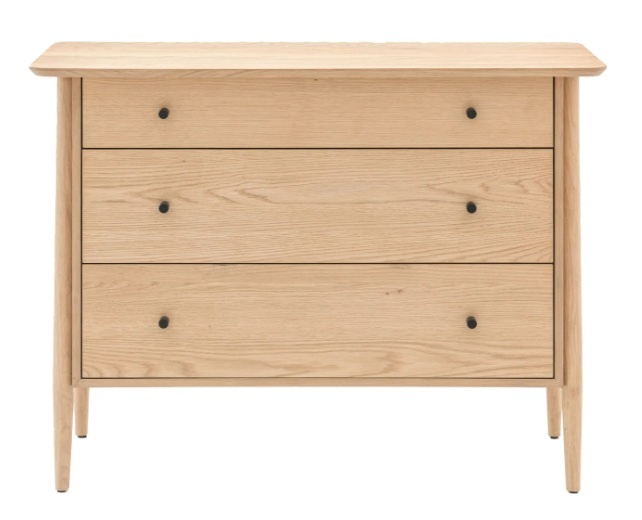 The Gallery Hatfield 3 Drawer Chest combines timeless design with practical storage, making it a perfect addition to any bedroom or living space. Crafted from high-quality solid oak, oak veneer, MDF, and rubberwood, this chest of drawers offers durability and a sleek, Scandinavian-inspired aesthetic.