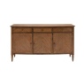 The Gallery Highgrove 2-Door Sideboard brings a perfect balance of style and functionality to your home. Crafted from premium mid-brown Mindy wood solids and veneers, this elegant piece showcases intricate marquetry detailing and features bronze beehive handles for a modern take on traditional design.