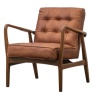 Elevate your living space with the Gallery Direct Humber Armchair, a stunning mid-century inspired piece that blends timeless design with exceptional comfort. Upholstered in rich, top-grain vintage brown leather, this accent chair develops a unique and beautiful patina over time, adding character and rustic charm.