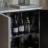 Add a touch of suave elegance to your home with the Gallery Jeeves Drinks Cabinet in a stunning silver finish. Featuring beautifully hand-glided reeded lines in silver leaf, this cabinet blends retro charm with modern sophistication. The contrasting black interior and mirrored back panel create a striking visual effect, perfect for showcasing your drinks collection.