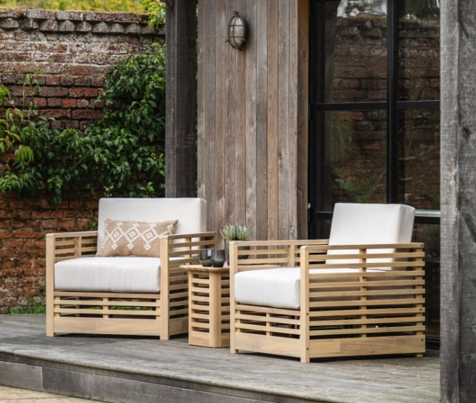 Create a cozy and sophisticated outdoor retreat with the Gallery Marotta Lounge Set. This elegant 3-piece set includes two comfortable armchairs and a matching side table, all crafted from durable acacia wood. With its clean lines and natural wood tones, this set brings warmth and modern elegance to any patio, garden, or balcony.