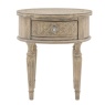 With a nod towards the french colonial style this round side table is made from mindy ash and features parquet inlaid veneer work in a lightly brushed natural finish with single drawer.