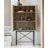 The Gallery Panelled 2-Door Cocktail Cabinet combines retro charm with modern design, featuring smoked oak veneer panelled doors, sleek black metal legs, and a versatile storage solution.