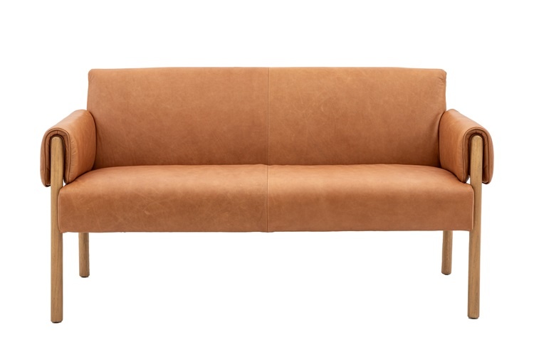 Adding an unusual, stylish design detail, the wooden arms are wrapped in leather upholstery, adding comfort and style.