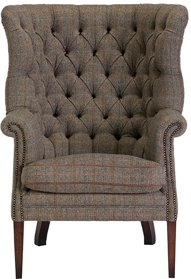 The Tetrad Harris Tweed Mackenzie Armchair is a classic wing chair that offers a blend of authentic Scottish material and traditional British design. It is known for its grand high back, deep button detailing, and robust construction, providing both a statement piece for a room and exceptional comfort.